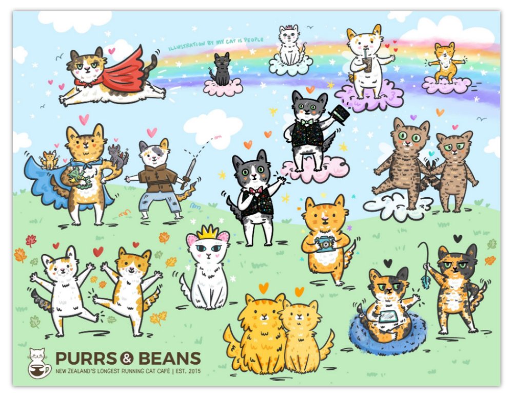 A pawsitively purrrfect family portrait of our furry family printed on a postcard-sized magnet, designed to stick on fridges, filing cabinets, and more.